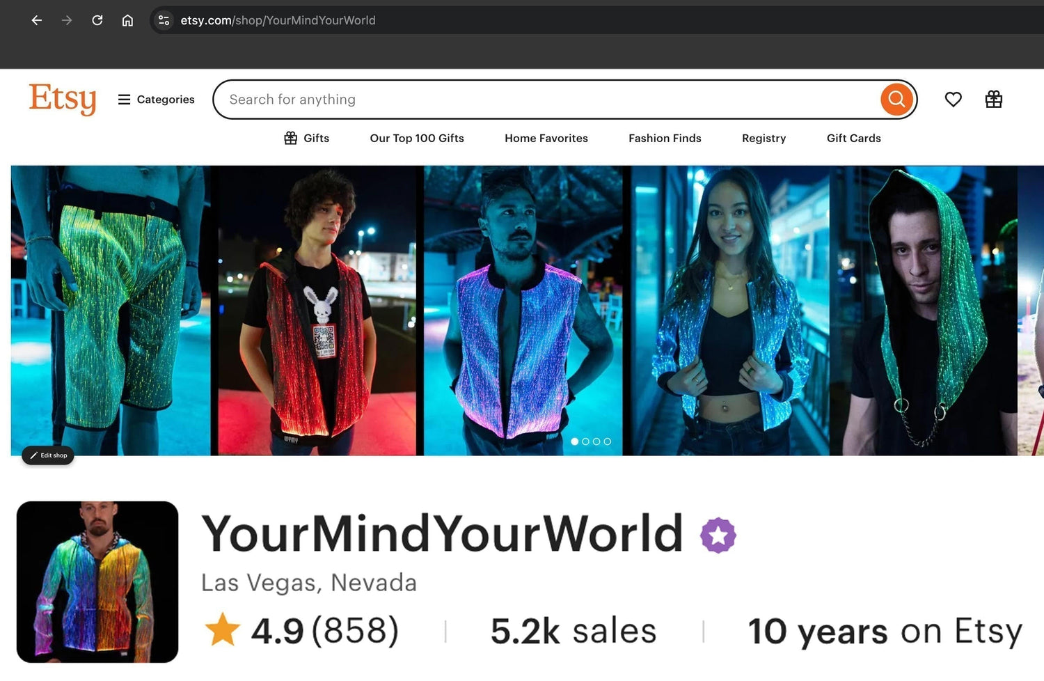 For over a decade, our pieces have lived on festival grounds, stages, and night streets — with 4.9★ from 800+ reviews on Etsy.